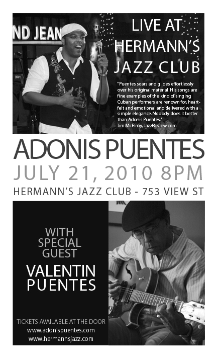 Cuban-Canadian Singer Songwriter Adonis Puentes returns to his homeland of Canada for a string of dates on Vancouver Island. Adonis is returning from an International tour which included the US and Asia. He will be joined by special guest Valentin Puentes, Adonis’ father and guitarist who is visiting from Cuba. The band will also feature Noah Becker on Saxophone and James Young on Bass.