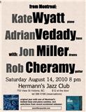 Montreal musicians Adrian Vedady (bass), Kate Wyatt (piano) will join Jon Miller (drums) and Rob Cheramy on guitar for an evening of original jazz including selections from Miller's 2009 release "Orchidology" and Vedady's recent acclaimed release on Elephant records "In Three Acts." 8pm Cover $12 at Hermann's Jazz Club 753 View St Victoria BC tel. for reservations 250 388 9166 hermannsjazz.com