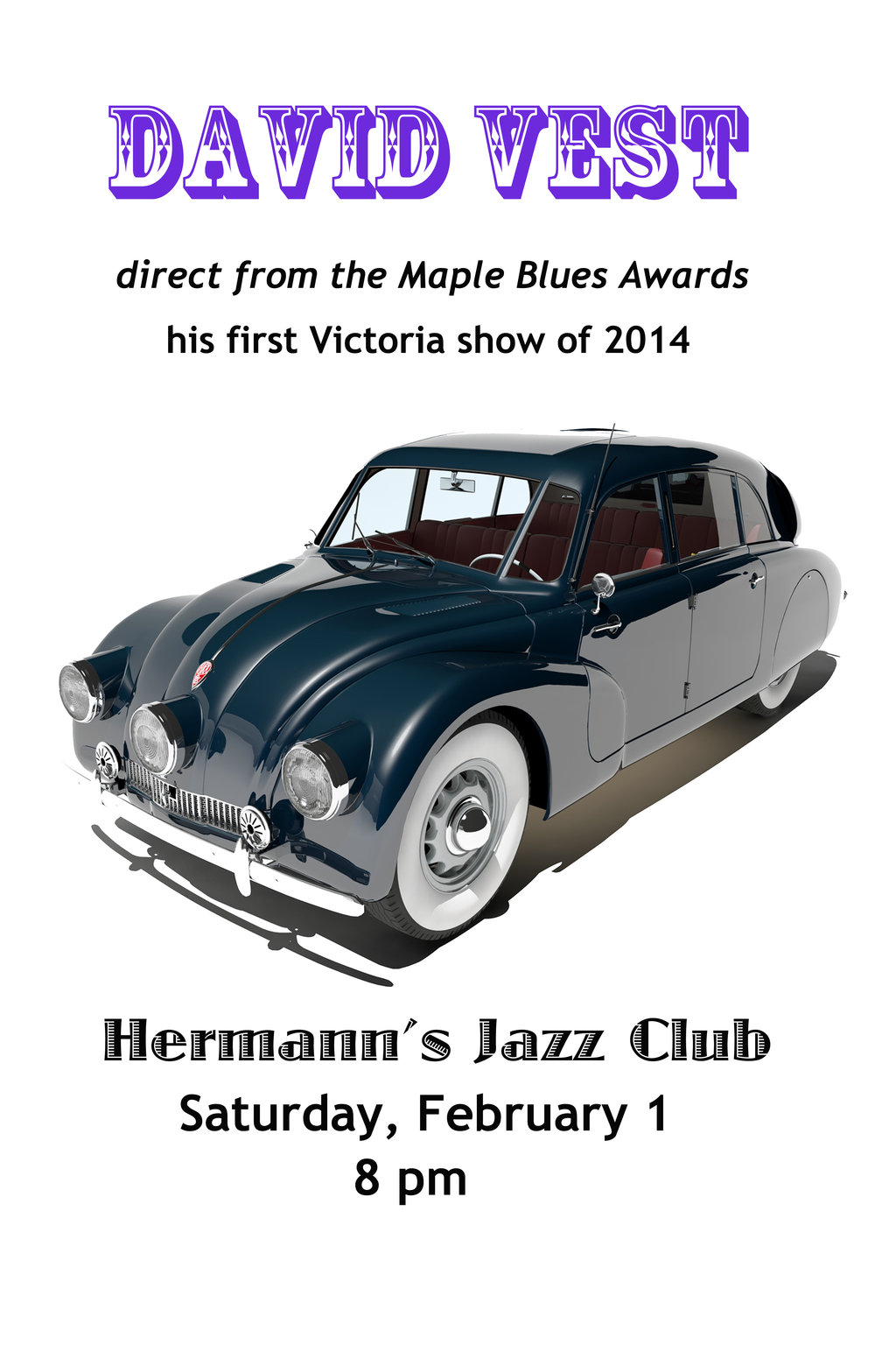 David's first Victoria show in 2014 follows his performance at the Maple Blues Awards in Toronto, where he was nominated for Recording of the Year and Piano Player of the Year. As with all his shows, expect this one to be different from the last one! http://www.davidvest.ca