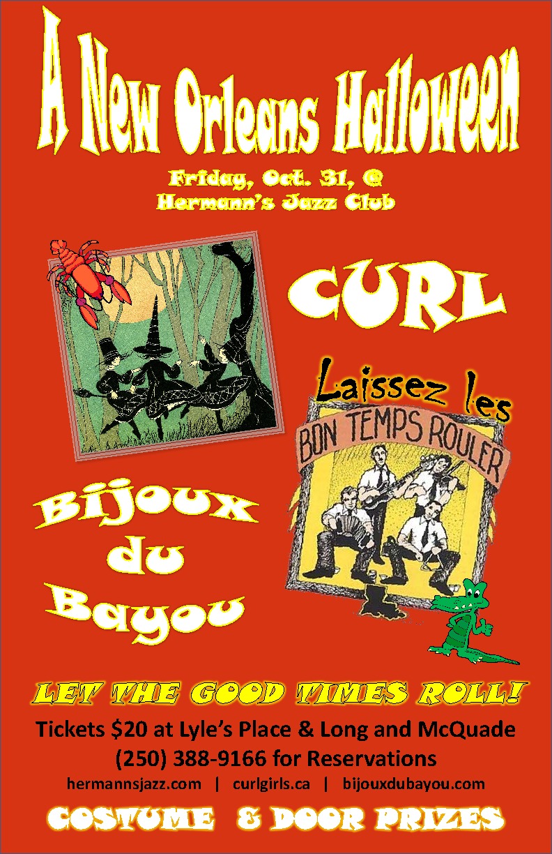A spooky evening of devilish dancing and wicked wailing with blues mamas, CURL and zydeco kingpins BIJOUX DU BAYOU. Get your freak on at Hermann's Jazz Club, Friday Oct. 31. Scaaaary, folks! COSTUME & DOOR PRIZES