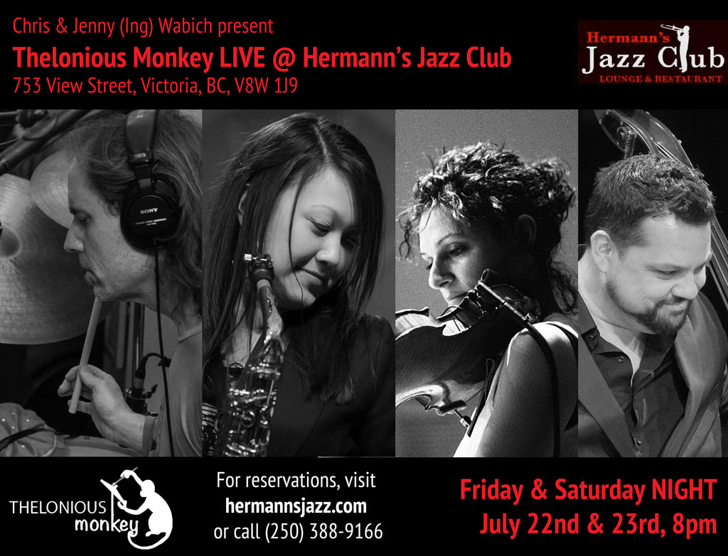 Thelonious Monkey is taking Los Angeles by storm. Focused around a set of strong original compositions by Chris Wabich and Jennifer Wabich, this Jazz Quintet quite literally rocks - fusing traditional jazz, middle eastern grooves that their drummer and leader is known for, and rock and roll.