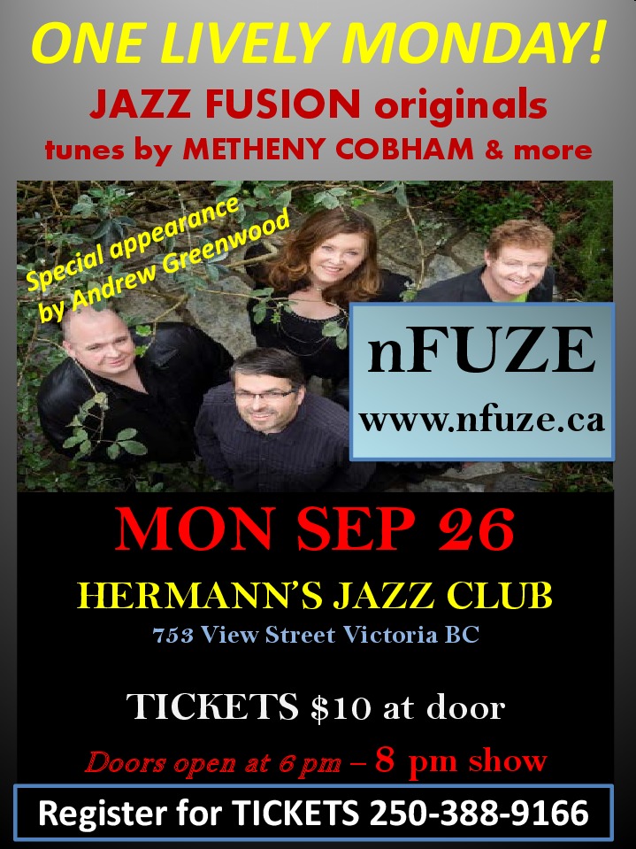 High energy jazz fusion performance of original music and tunes by Metheny Cobham and more