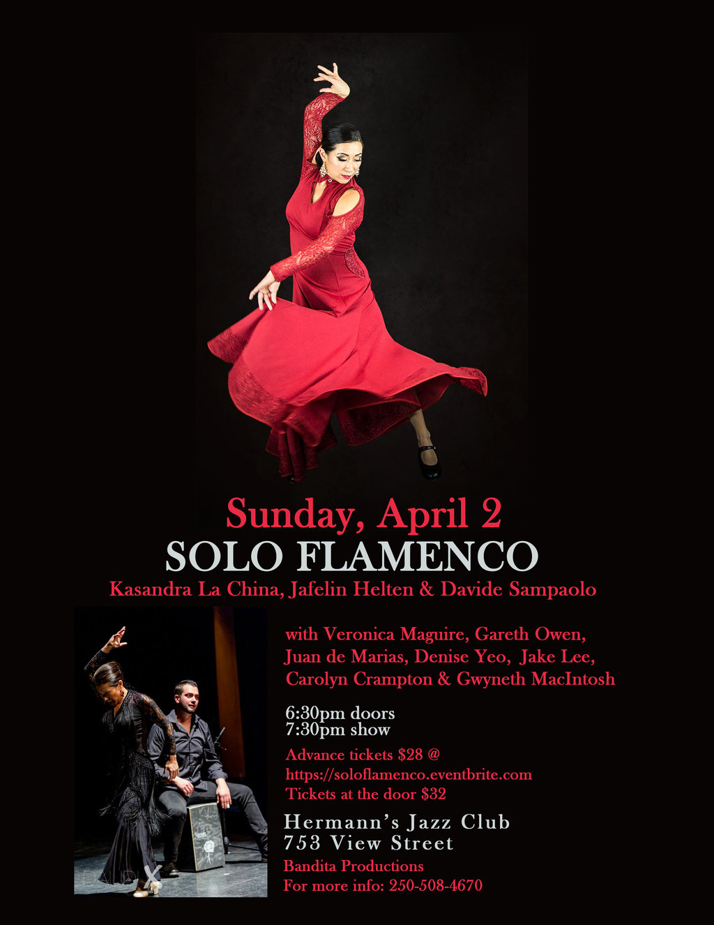 Solo Flamenco ~ Kasandra Flamenco & Local Guest Artists: Kasandra la China, Jafelin Helten, Davide Sampaolo , Gareth Owen, Jake Lee, Veronica Maguire, Juan de Marias, Gwyneth la Chispa MacIntosh, Denise Yeo, Carolyn Crampton