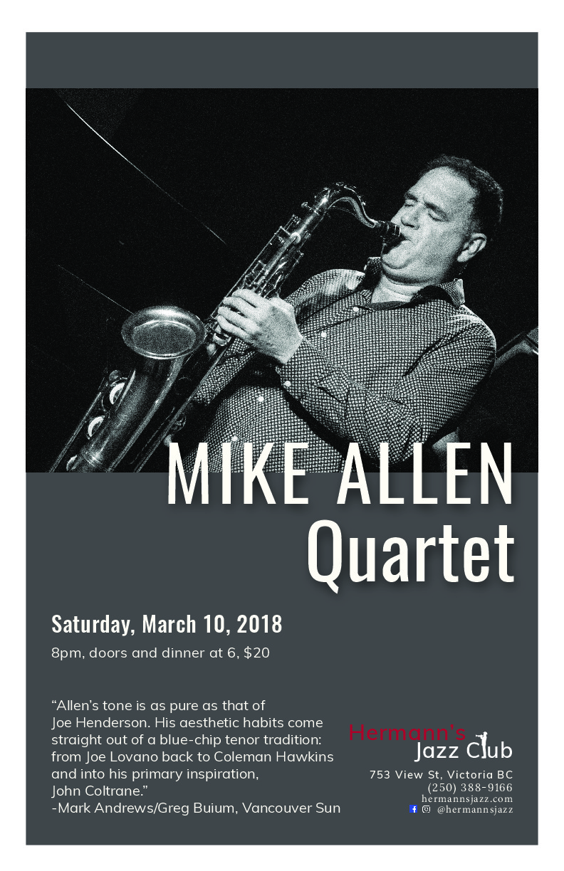 Mike Allen Quartet: Mike Allen-tenor sax Miguelito Valdes-trumpet John Lee-bass Kelby MacNayr-drums
