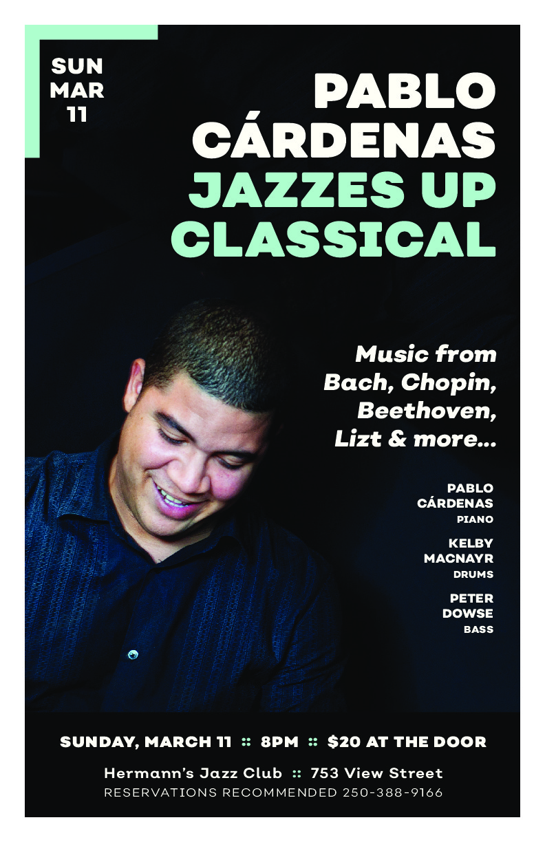 Sunday Sessions Pablo Cardenas Jazzes Up Classical: Pablo Cardenas-Piano, Kelby MacNayr- Drums, Peter Dowse-Bass