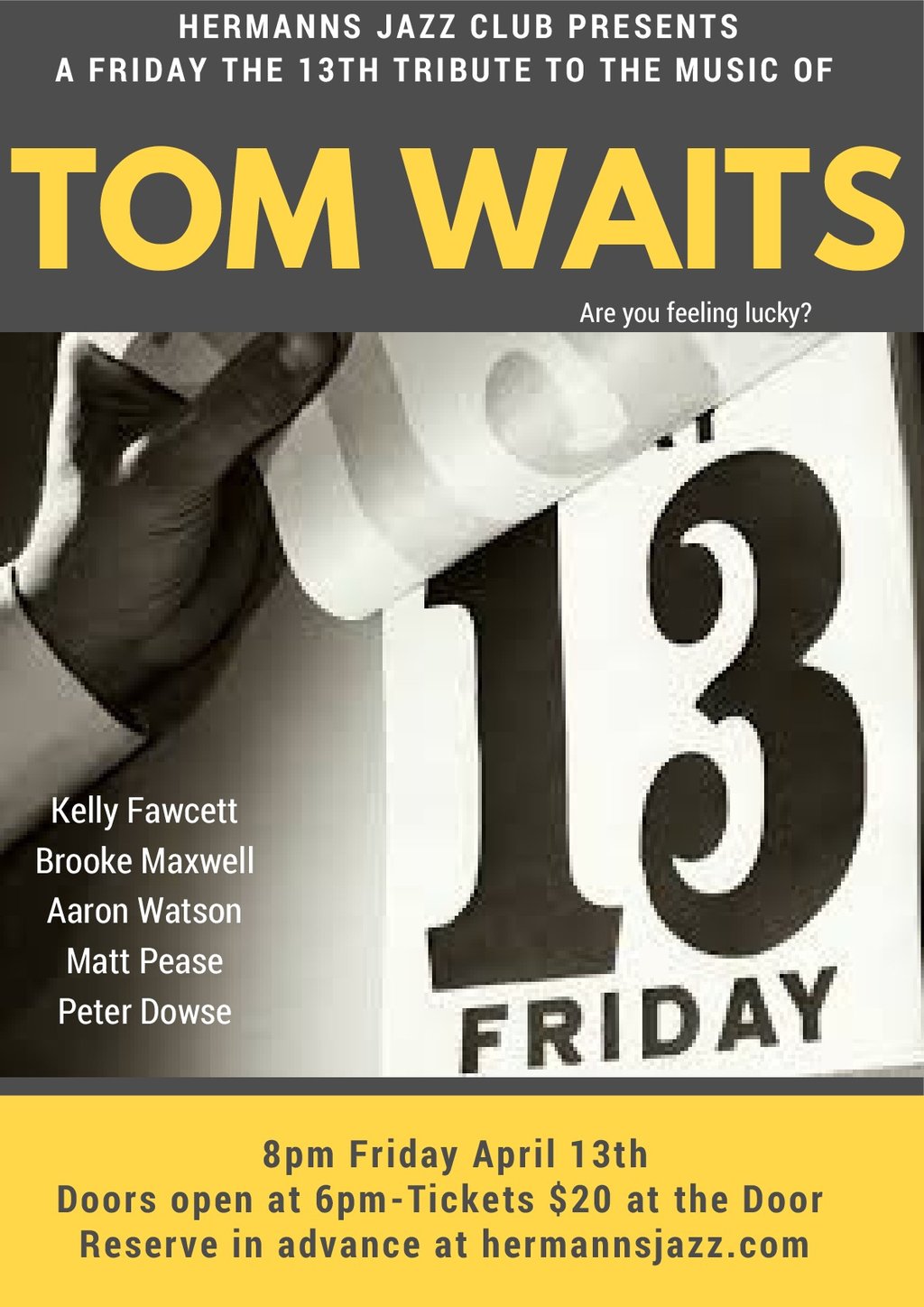 A Friday the 13th Tribute to the Music of Tom Waits: Kelly Fawcett, Brooke Maxwell, Aaron Watson, Matt Pease and Peter Dowse