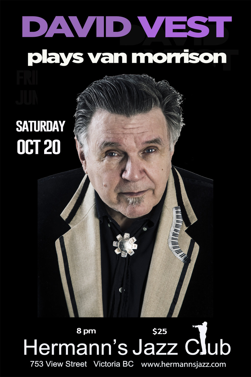 As always with David Vest. this is no "tribute" show but an opportunity to hear David and his fine band explore yet another iconic artist’s music. They’ll play songs spanning the long and incredible career of Van Morrison, the king of Celtic soul. Morrison is not only a great singer, he is also a genre-defying musician and one of modern music’s greatest songwriters. In Morrison’s music, jazz and blues go hand in hand with great poetry — meaning that you can expect to see Ray Charles and John Lee Hooker walking side by side with William Blake and William Butler Yeats, with Mahalia Jackson leading the way.