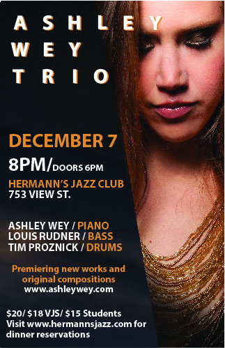 Victoria’s pianist Ashley Wey celebrates the beauty of modern jazz with passion and improvisational joy, bringing the standards freshly back to life. With three critically acclaimed self-produced albums to her credit, the captivating Wey returned to Victoria with her latest ‘Live’: an album filled with inventive ideas and breathtaking artistry. Ashley is a charismatic singer/pianist who lights up the stage with her bright smile and magnificent sounds that open minds and reach hearts.