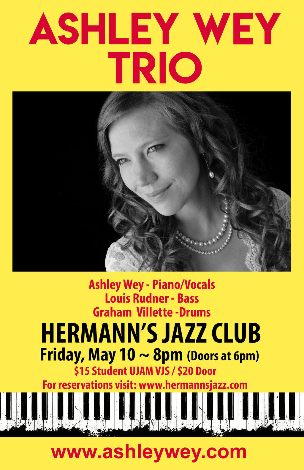 Victoria’s pianist Ashley Wey celebrates the beauty of modern jazz with passion and improvisational joy, bringing the standards freshly back to life. With three critically acclaimed self-produced albums to her credit, the captivating Wey returned to Victoria with her latest ‘Live’: an album filled with inventive ideas and breathtaking artistry. Ashley is a charismatic singer/pianist who lights up the stage with her bright smile and magnificent sounds that open minds and reach hearts. Joined by Louis Rudner(Michigan) on bass and Graham Villette on drums.