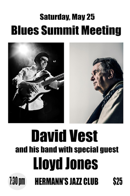 David Vest welcomes guitar hero Lloyd Jones, one of the finest American blues artists, for a high-level “summit meeting of the masters,” backed by members of David’s band. Make your reservations early, because this show will sell out.