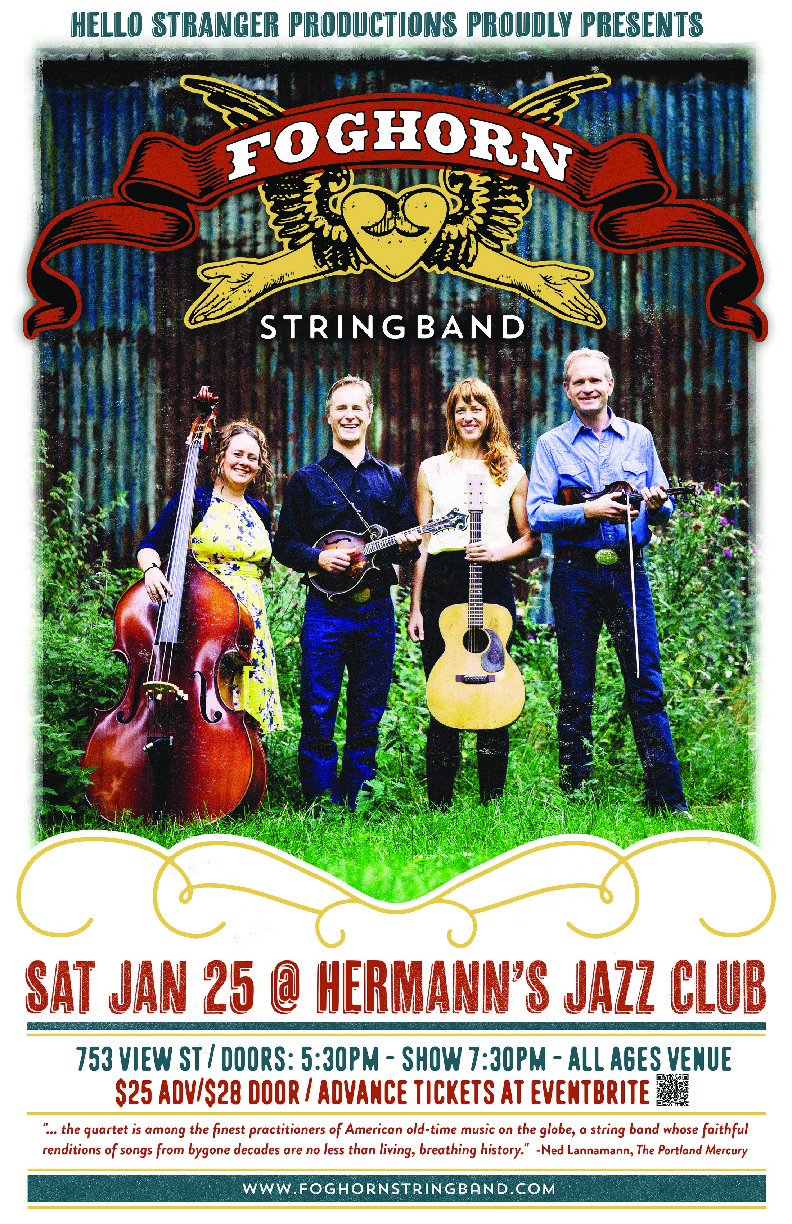 American roots music is a diverse and never-ending well of inspiration, and Foghorn Stringband continually and obsessively draws from old-time, bluegrass, classic country, and Cajun music traditions in an ongoing quest to present a broad span of American historical music with an unparalleled youthful energy, joy, and virtuosity.