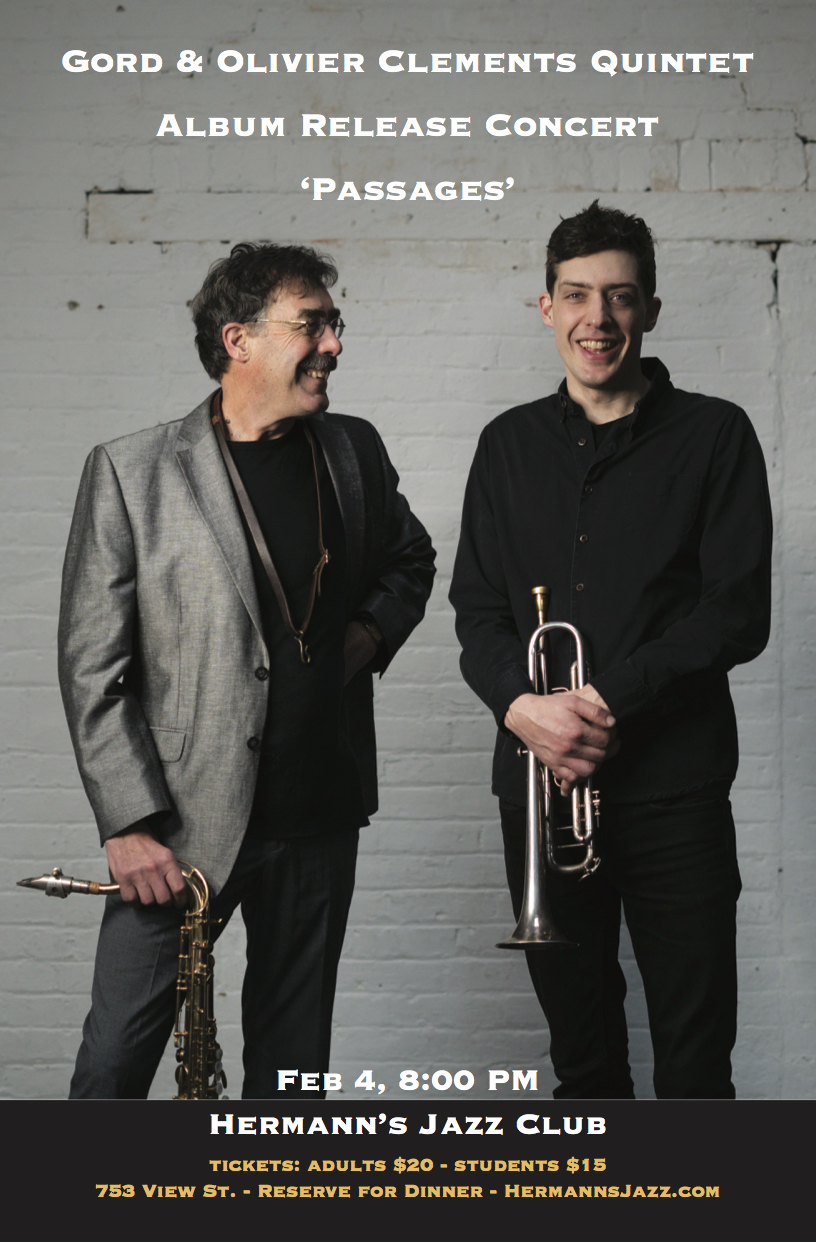 On February 4th Gord and Olivier Clements will return to Hermann’s Jazz Club to release their very first collaborative album, “Passages”. After three years of work composing and developing the music, the album was recorded live at Hermann’s Jazz Club in the spring of 2019.