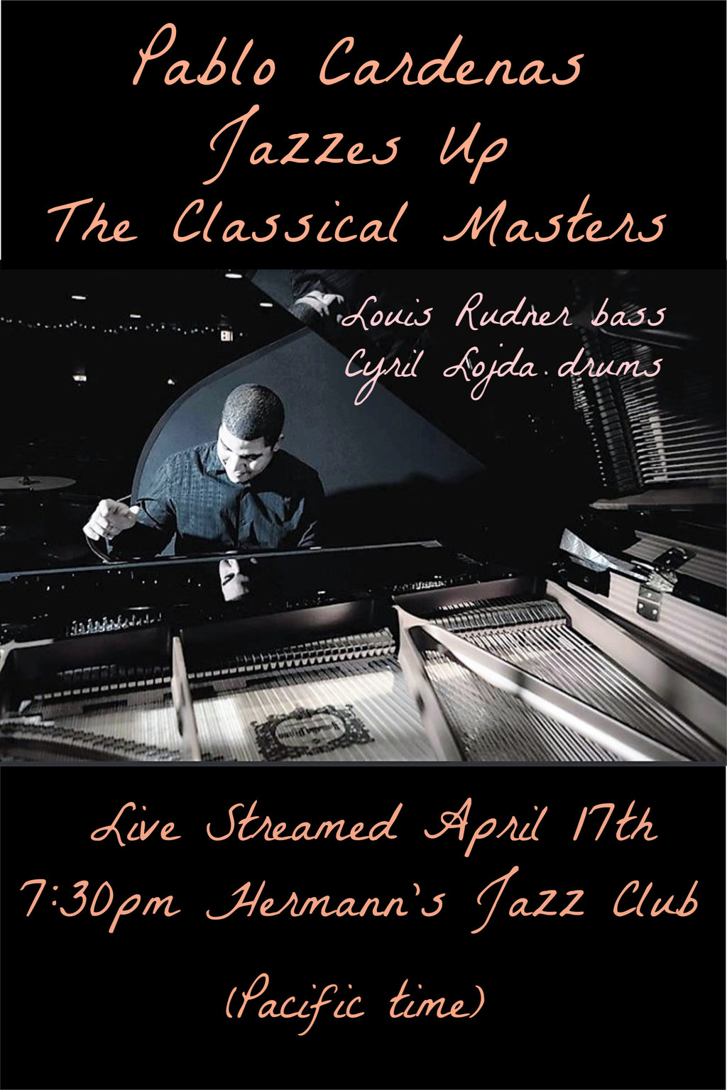 Livestream Donation Suggested: click ticket icon Pablo will be LIVESTREAMING his Trio on April 17 from Hermann's Jazz Club!