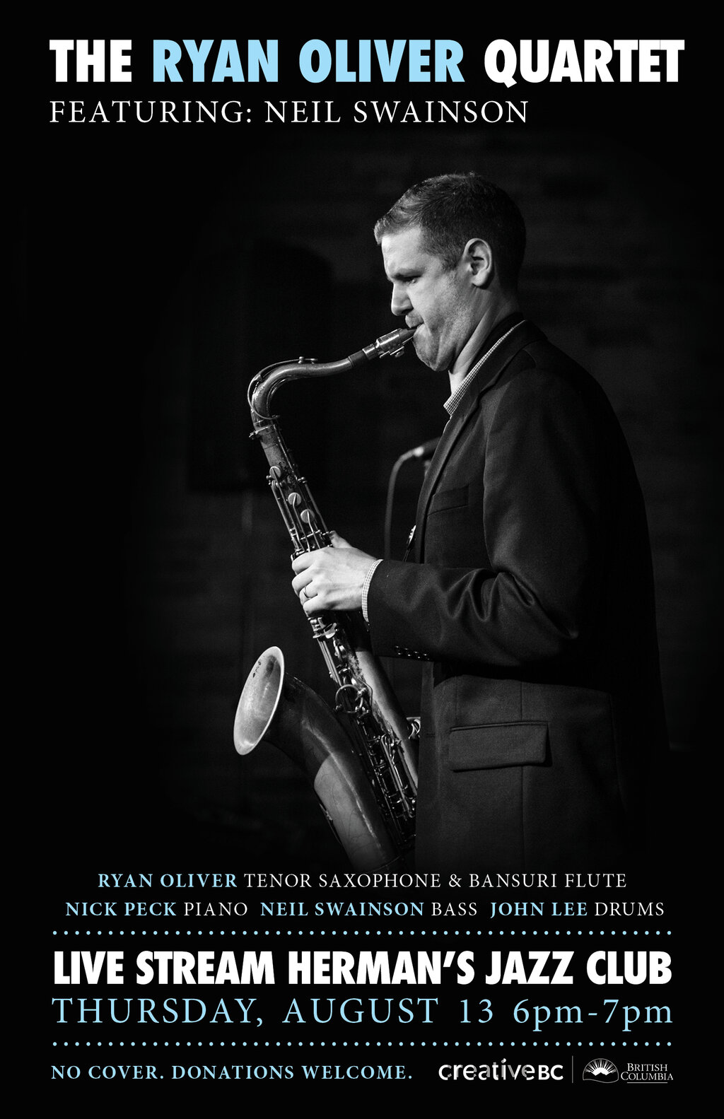 Ryan Oliver Quartet f. Neil Swainson LIVE STREAMED SHOW