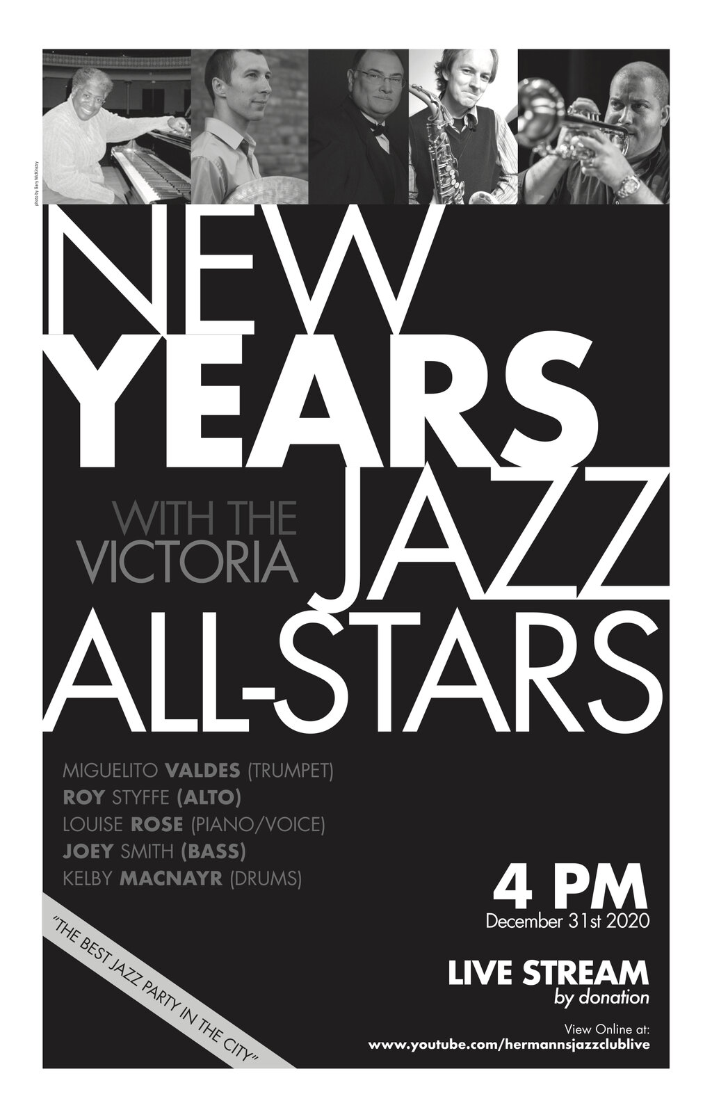 Thu. December 31st 2020 4:00pm - 5:30pm (All Ages) The Victoria Jazz All-Stars celebrate 2020 with the EARLY New Year show!