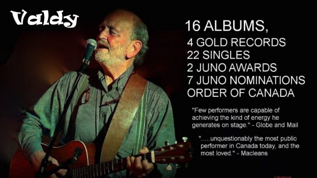 Valdy is a Canadian folksinger to the highest degree! He has toured Canada for forty-six years, and plays regularly in New Zealand with Kiwi mate Graham Wardrop. He has also toured Austria, Denmark, Germany, Holland, Spain, Sweden, and Switzerland, and is an oft-invited performer at dozens of music festivals, including the Kerrville Folk Festival in Texas.