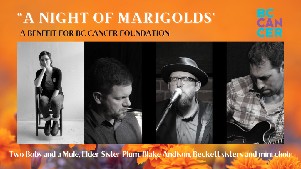 Sat. April 30th 2022 7:00 - 9:00 doors at 5:30 (All Ages) An evening of live folk and indie rock music courtesy of local Victoria musicians in support of BC Cancer Foundation. Musicians include Victoria’s own Two Bobs and A Mule, singer songwriter Elder Sister Plum and The Mini Choir!