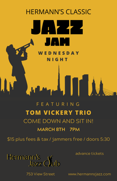 Tom Vickery, Rob Johnson and Dave Emery are an incredible trio whose love of jazz shines through when they are on stage. Come and experience the energy of playing with these consumate professionals or get lost in the music of a no-holds-barred jazz jam.