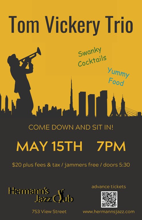Come join Tom and friends for a relaxed evening of jazz, cocktails and great food! Musicians are welcome to come and sit in with the band.