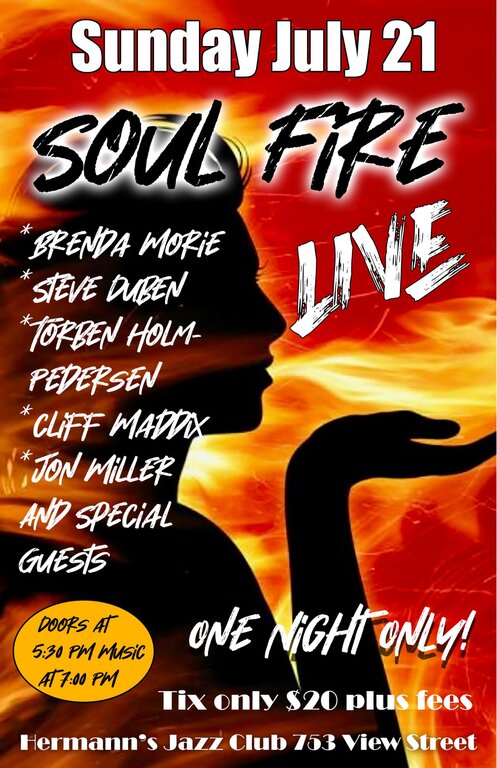 Soul Fire is a dynamic band that delivers a fusion of soul, jazz, and Latin rhythms, showcasing the influences of Stevie Wonder, Jazz Crusaders, Joe Sample, Joan Osborne, and Nina Simone, with the captivating vocals of Brenda Morie. Their music embodies the essence of Stevie Wonder's soulful melodies, the improvisational flair of Jazz Crusaders, and the smooth jazz stylings of Joe Sample.