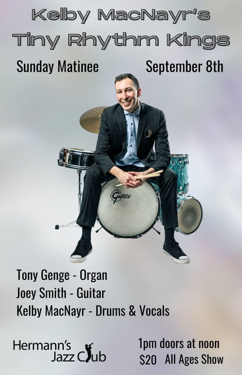 Featuring the swinging and soulful drums and vocals of Kelby MacNayr, the outrageously groovy Hammond B3 organ of Dr. Tony Genge and the masterful guitar riffs of Joey Smith, this group is a tour-de-force of swing!