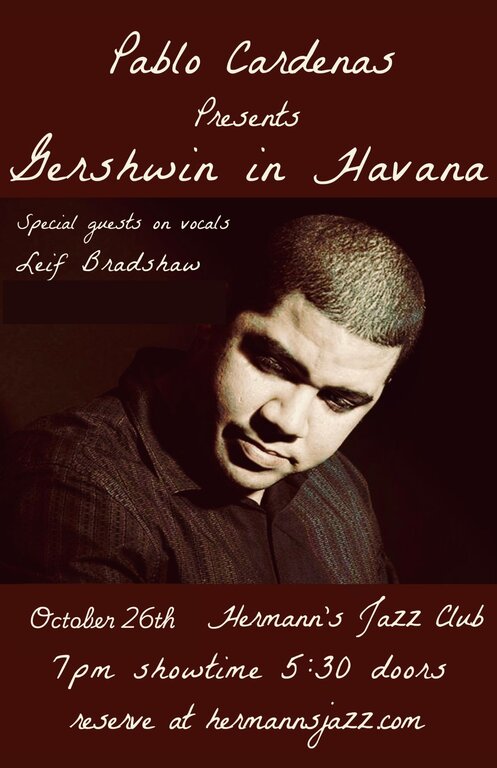 World class Cuban pianist Pablo Cardenas is back to Hermann’s Jazz Club to perform the best of Gershwin in Cuban style, recreating his music with modern harmonies and Afro Cuban rhythms, a perfect fusion you don’t want to miss. Pablo will be inviting some outstanding special guest vocalists and joined by an all stars line up.