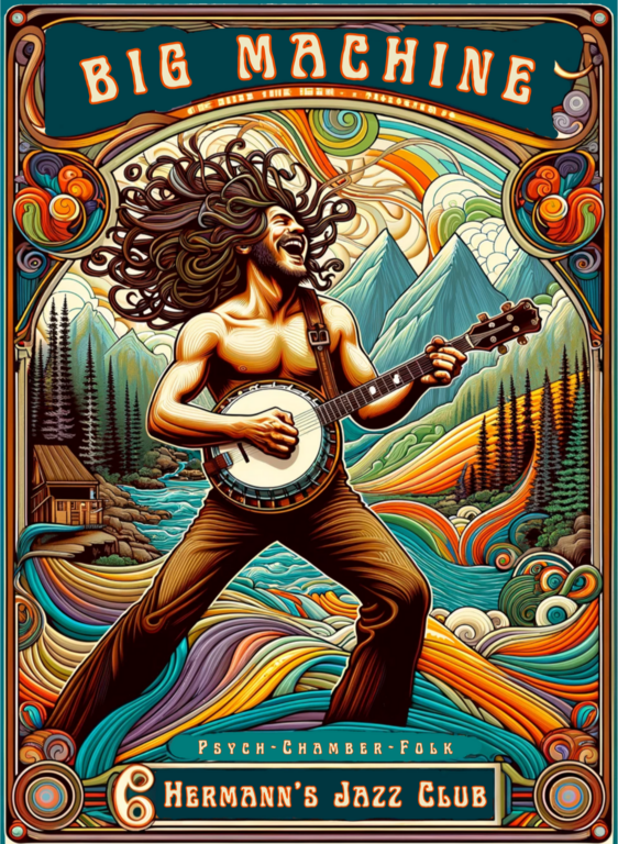 Sat. March 1st 2025 7:00 PM - 9:00 PM doors at 5:30 PM (All Ages) Two-Time Western Canada Music Award Winner and Juno Nominee Oliver Swain leads BIG MACHINE, an all-star line up of artists featuring elements of Bluegrass, Psych-Rock, Old-Time, Jazz and modern Songwriting. From his early days travelling the Appalachian Mountains and Mississippi Delta to touring the world with some of North America's most loved roots bands, The Bills, The Duhks and Outlaw Social(Pharis Romero), Swain has explored the depths of Americana music and written songs that experiment with the palette in surprising ways. BIG MACHINE has toured across North America with performances at Edmonton, Calgary, Vancouver and Winnipeg Folk Festivals and was twice selected as an Official Showcase artist for Folk Alliance International. Known for his astonishing vocal and instrumental abilities, Swain has assembled an ensemble of some of the greatest musicians and singers in Victoria including Glenna Garramone(Guitar, Piano, Vocals), Ashley Wey(Organ, Keys, Vocals), and Tyler Lieb(Pedal Steel, Guitars) with Swain rounding out the ensemble on String Bass and a hundred-and-fifty year old goat skin Banjo.