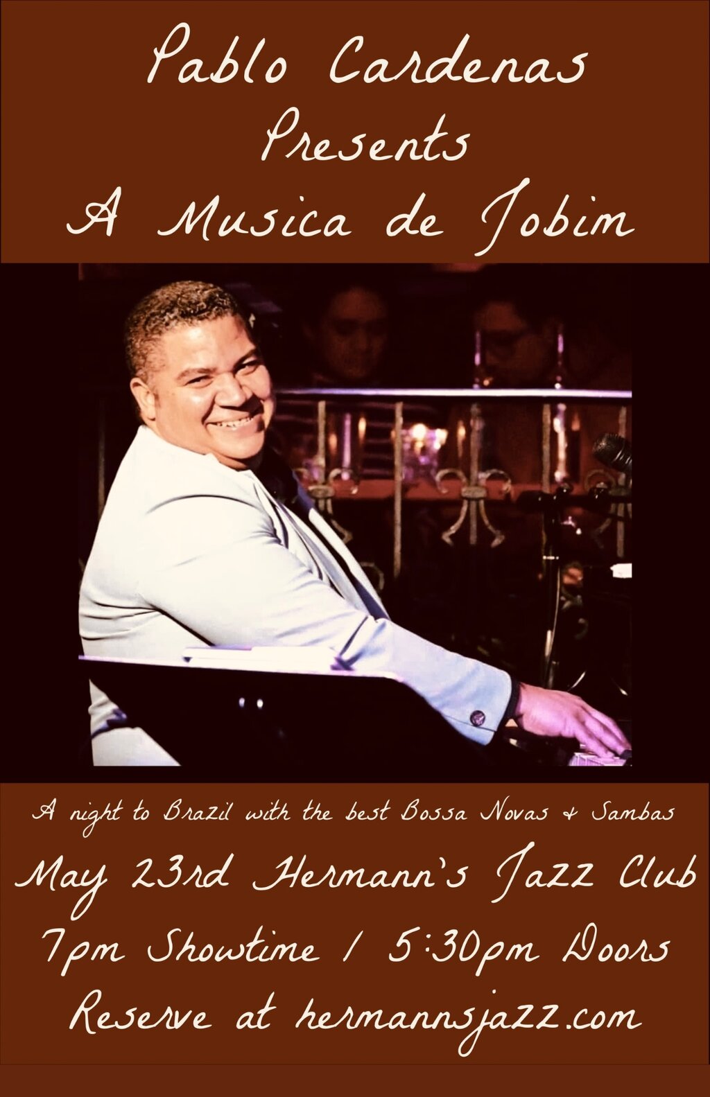 World class Cuban pianist Pablo Cardenas is bringing you a night dedicated to Antonio Carlos Jobim, as he usually does with other styles, he will be performing some of Jobim’s best bossa novas and sambas in a unique way, adding different influences to Jobim’s compositions like latin jazz, Afro Cuban rhythms, contemporary jazz, fusion. Pablo will be accompanied by an all stars line up of musicians from different nationalities and artistic background to add a special flavour to the music, and featuring the outstanding vocal interpretations of his special guests.