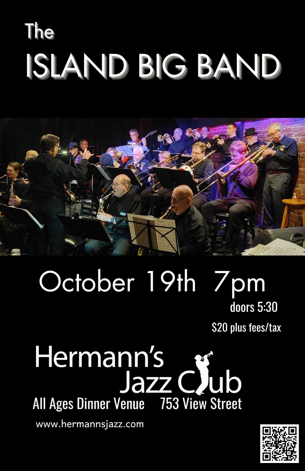 This 35-year old Victoria BC based non-profit organization focuses on music styles from the 1930's to the present. During the first ten years the band played for dances around Vancouver Island. Since that time the library has progressed to include contemporary Jazz works primarily for the enjoyment of the players and the audience. Packed Monday night gigs in Victoria include 35+ years at Herman's Jazz Club, several years each at the Swiftsure Lounge, Harpo's Night Club, and Millennium Jazz Club.