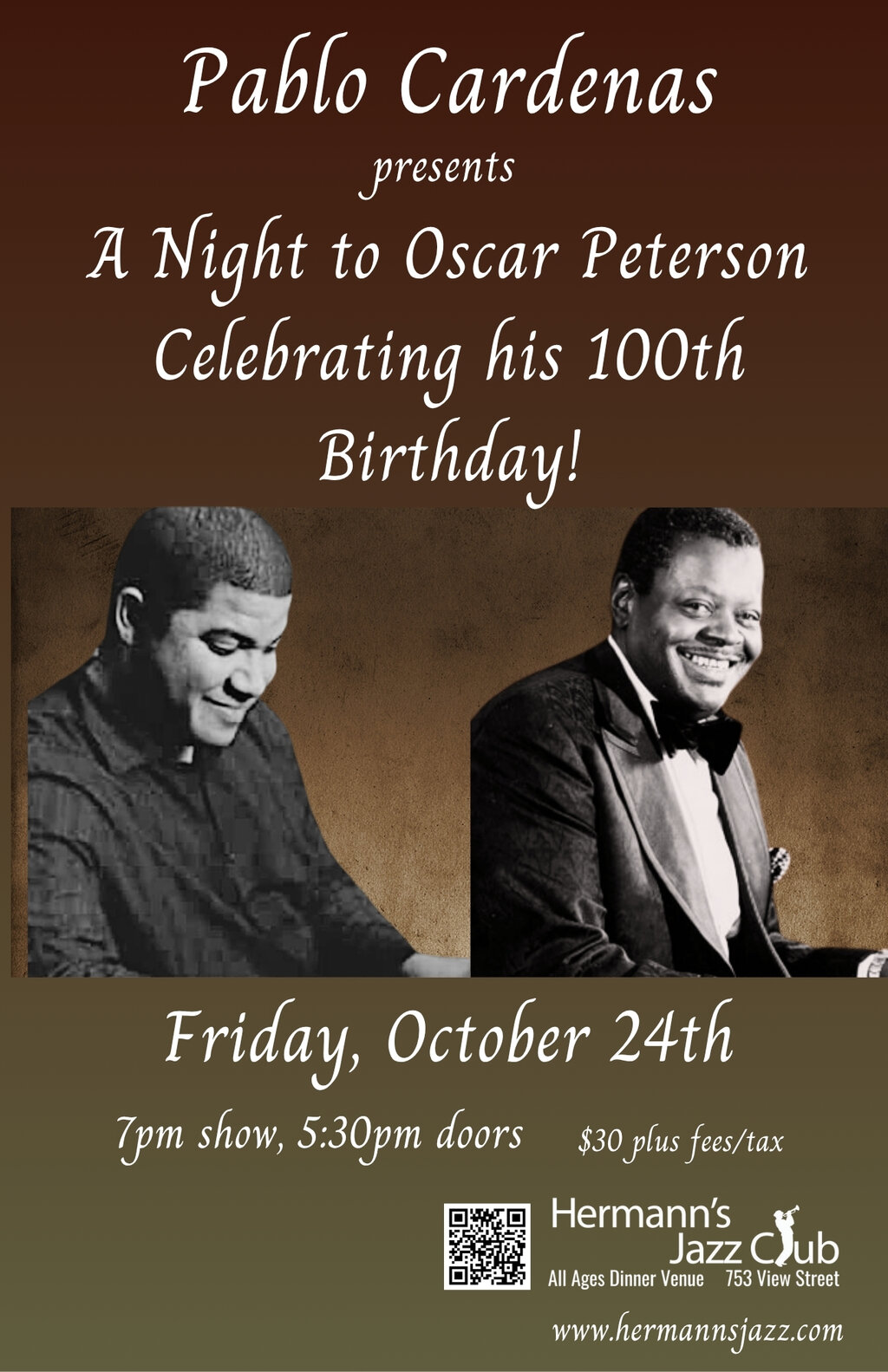 Pablo Cardenas presents A Night to Oscar Peterson celebrating his 100th Birthday!