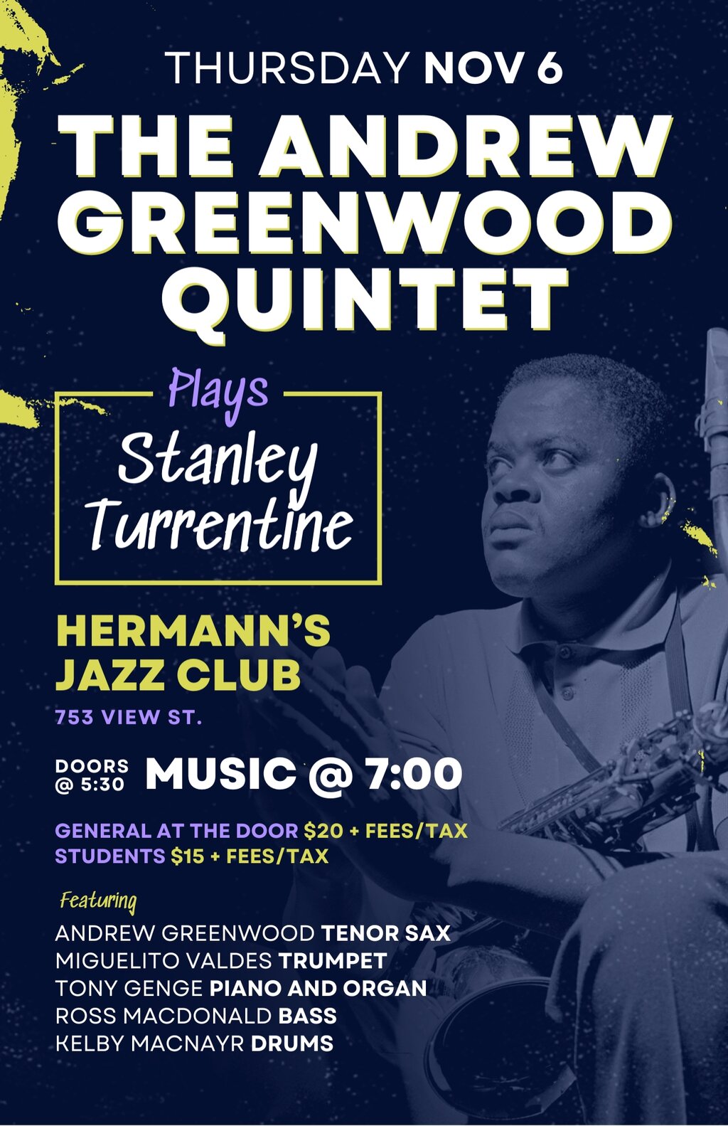 Andrew Greenwood Quintet plays Stanley Turrentine
