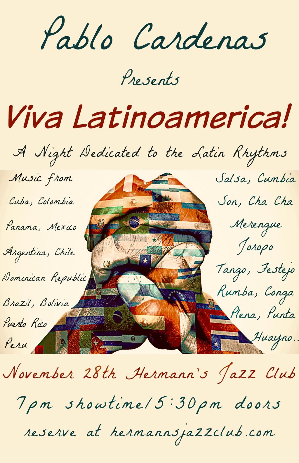 They want to show you a lot of what Latin music can offer by getting you on a journey through the music of different countries like Cuba, Colombia, Argentina, Brazil, Mexico, Venezuela, Peru, Dominican Republic, Puerto Rico, and more. Pablo will be joined once again by “The West Coast Cuban Orchestra”, an all-star lineup of musicians from all over the world and guest vocalists. This will be an event not to miss with a representation of the best Latin American music.