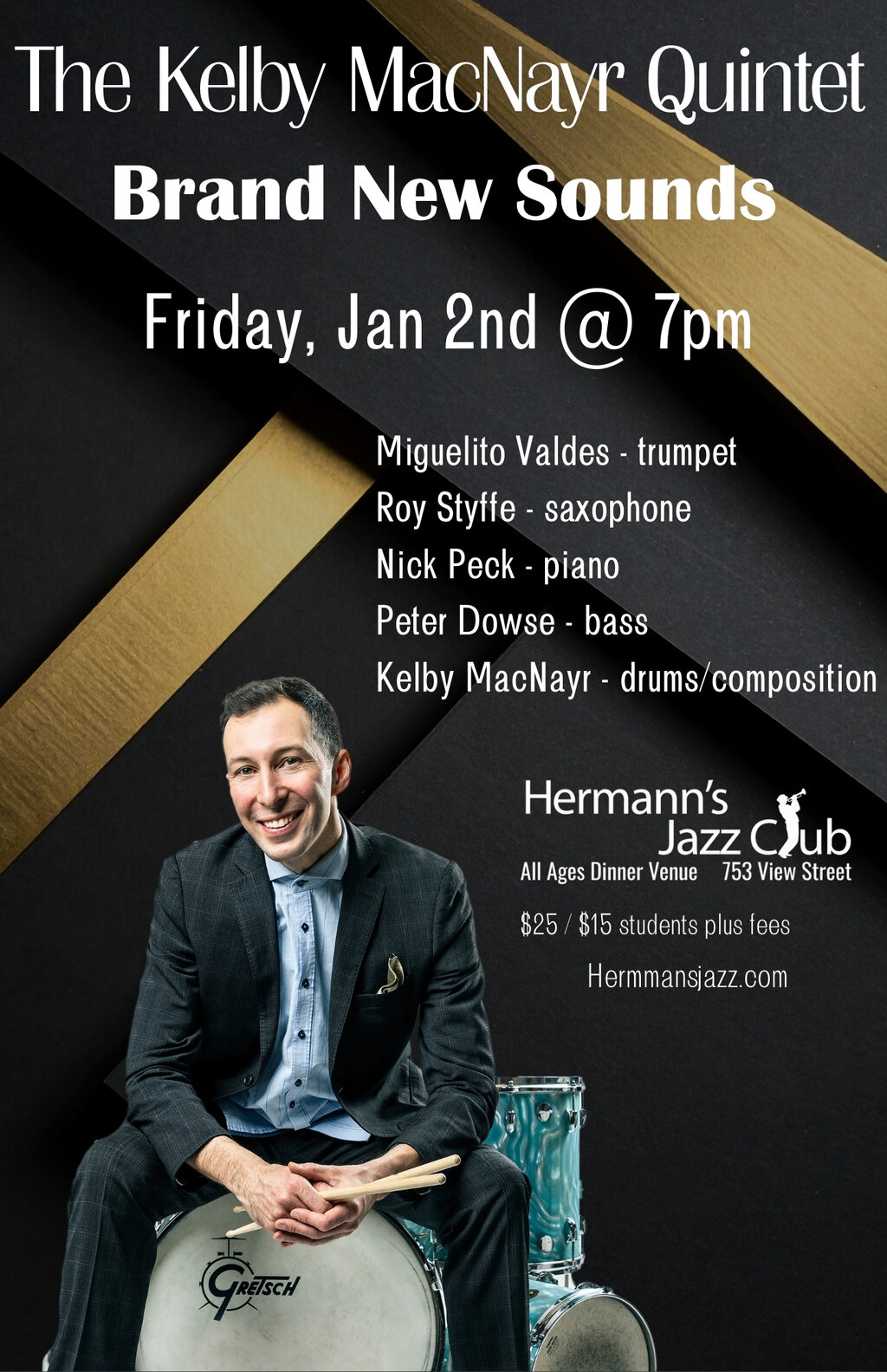 Drummer and bandleader Kelby MacNayr composes music that is alive, stunning and pulsating with rhythms and melodies from the jazz world and beyond!