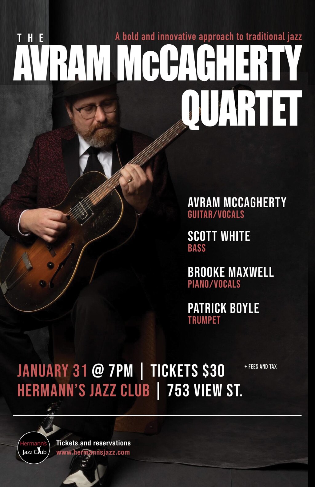 The founder of the Stomp Club and the Capital City Syncopators, Avram McCagherty, is proud to present a quartet of Jazz masters to you on September 26. Drawing from their different strengths and experiences ranging from countless bands, Cirque Du Soleil, Broadway musicals and more, this powerhouse all-star group promises to provide a show that is deeply rooted in traditional jazz whilst forging new ground. Hard swinging rhythms whilst staying sensitive and dynamic.