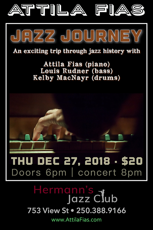 An exciting trip through the history of jazz, showcasing the versatility and adaptability of the art form - with the Attila Fias Trio.