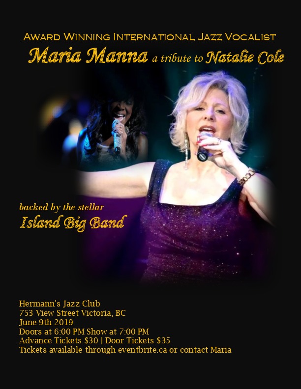 Award-winning International Jazz Vocalist and Producer Maria Manna is backed by the stellar 17 piece Island Big Band. Maria belts out Natalie Cole’s compositions from the Albums “Unforgettable” and “Take a Look”. Hold on to your seats as this high energy show entertains you with hits like “Orange Coloured Sky”, “Route 66”, “This Can’t Be Love”, “Unforgettable” and much more!
