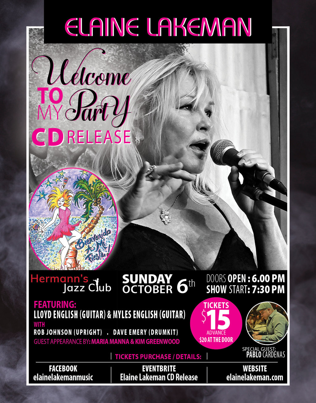 Join ELAINE LAKEMAN and friends for a fabulous musical evening of both original songs from her soon to be released album, “ Elena “ and classic jazz standards from her first album When it Rains.