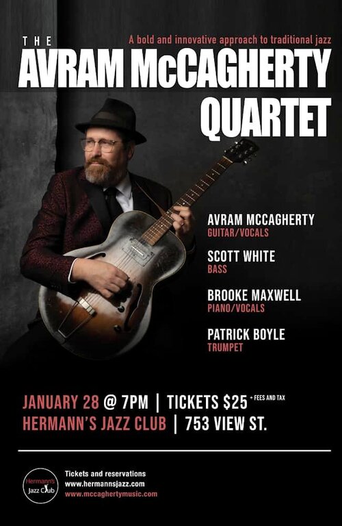 The founder of the Stomp Club and the Capital City Syncopators, Avram McCagherty, is proud to present a quartet of Jazz masters to you on Jan 28.