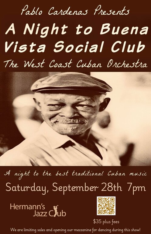 “A Night to Buena Vista Social Club” will be an incredible evening of music and dance (Hermann's will clear the mezzanine), with an all stars line up of musicians and special guests. See you then!