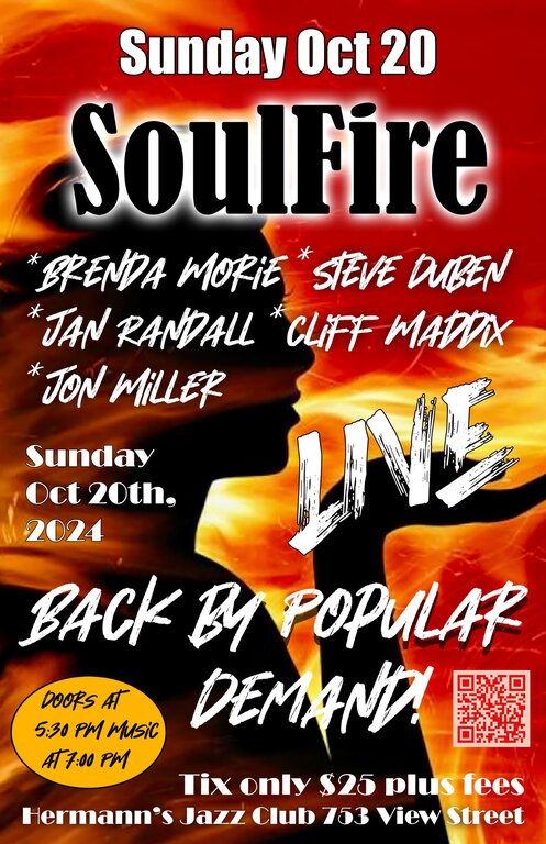 Brenda Morie and each member of Soul Fire brings their unique background and expertise, weaving together intricate instrumental solos and heartfelt vocal performances that resonate with listeners. Whether it's the infectious beats that get you dancing or the soulful ballads that tug at your heartstrings, Soul Fire embodies a harmonious blend of genres that invites everyone to experience the joy of music in its most vibrant form. Get ready to be swept away by their captivating sound and the undeniable energy that makes every performance a memorable celebration of musical fusion.
