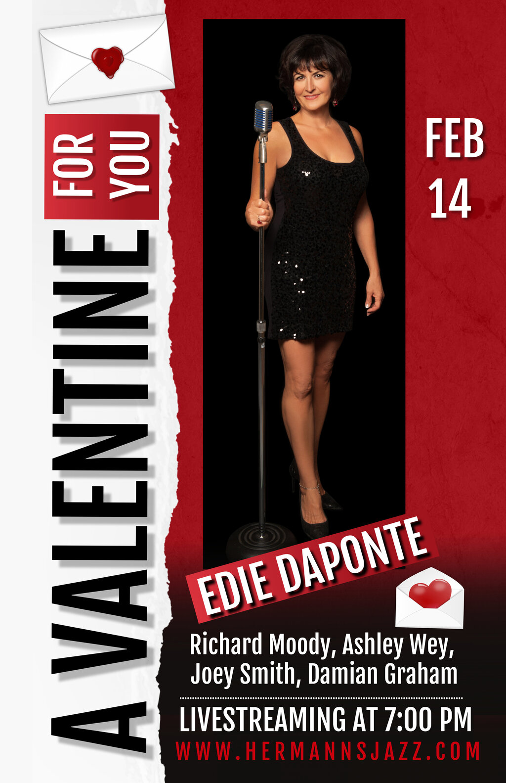 Sun. February 14th 2021 7:00 pm - 8:30 pm (All Ages) Who better than Edie Daponte to share a special Valentine's Day!