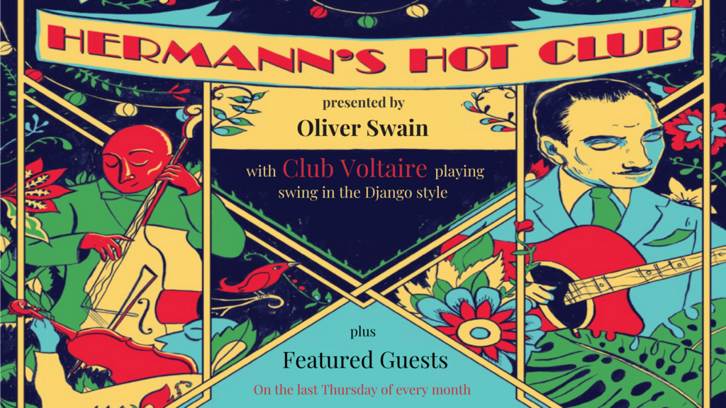 Thu. June 24th 2021 7:00 pm - 8:30 pm (All Ages) Hermann’s Hot Club happens the last Thursday of every month at Hermann's! Expect a night of swing, led by award-winning Oliver Swain.