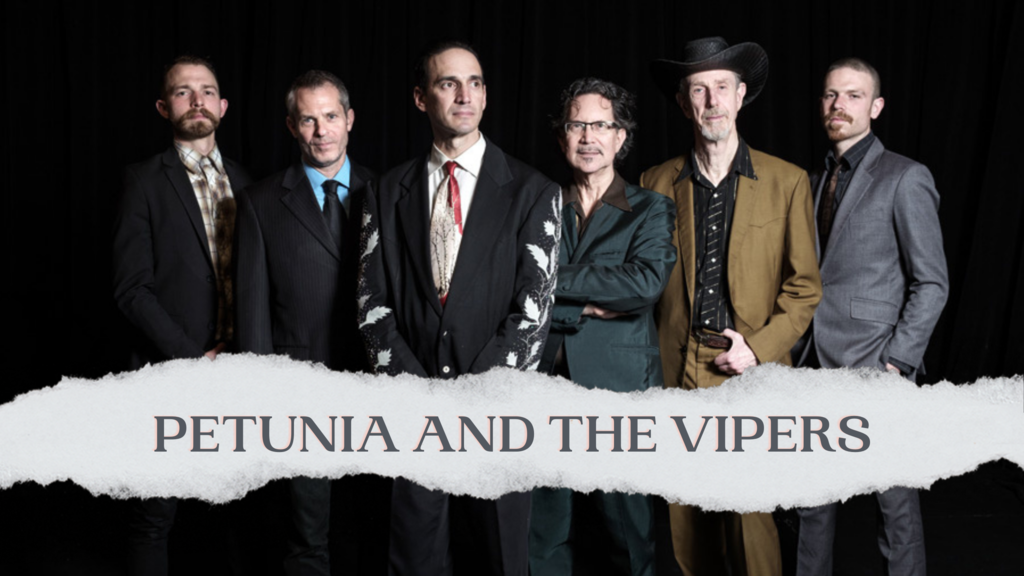 After touring for the past decade to the UK, Canada and parts of the USA, world acclaimed five piece Western Swing group Petunia and the Vipers make another trip to Victoria for Hermann's Hot Club. Louis Armstrong was once asked what his favorite kind of music was, and his response was simple; “Good music”. Petunia & the Vipers’ sound may not sit comfortably in one certain genre, but “Good Music” describes it well. Together with his band the Vipers they play original music combining elements of classic 1920’s, 30’s 40’s, 50’s, 60’s, and 70’s country, western swing, French cabaret, Romanian, ragtime, jazz, country blues, alt country rock, Mexicana, punk and folk music’s. A new music that springboards off of music of the past and jumps into the present day, left with only echoes of the past… Something in between 1920’s and steam punk.