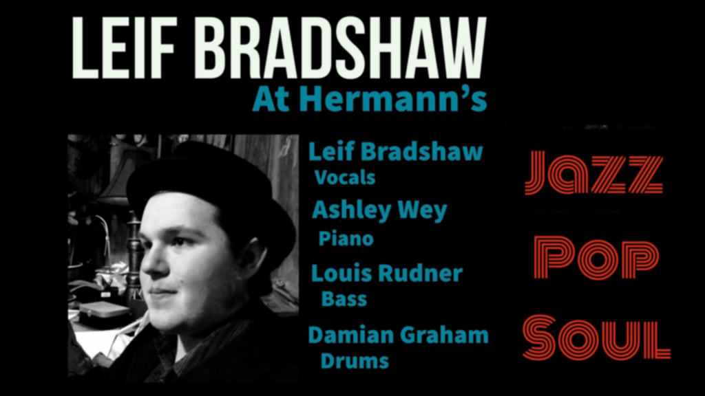 Sit back, relax, and enjoy a jazzy show featuring Leif Bradshaw, Ashley Wey on piano, Louis Rudner on bass and Damian Graham on the drums.