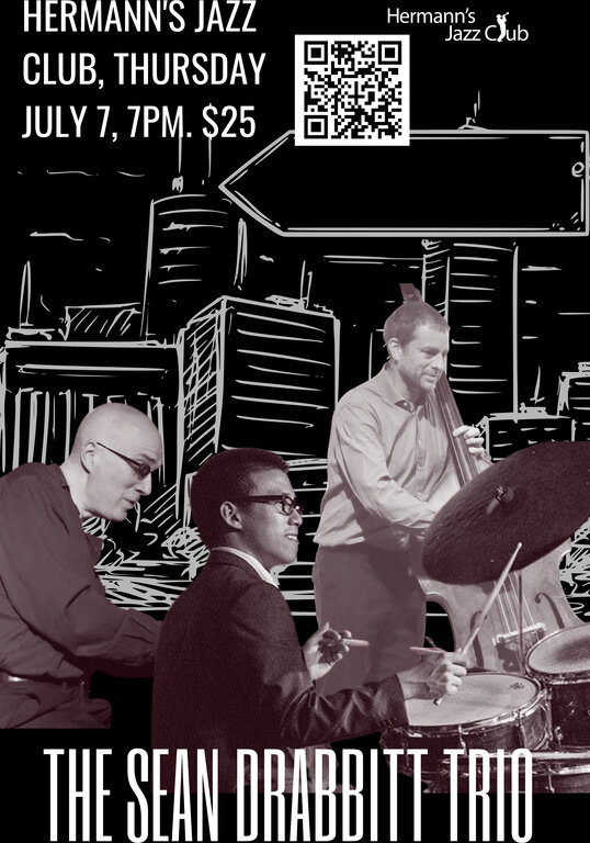 Thu. July 7th 2022 7:00 - 9:00 doors at 5:30 (No Minors) For this special performance Sean Drabitt Trio will include Miles Black on piano and John Lee on drums.