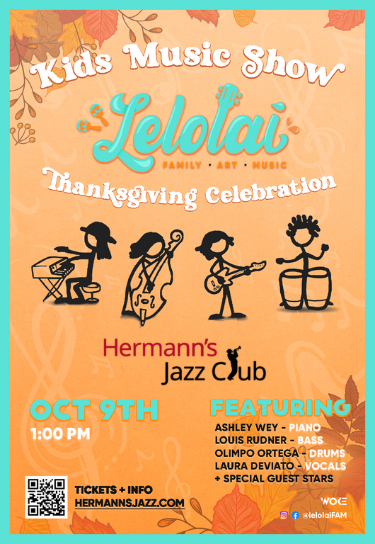 After last shows SOLD OUT success, Lelolai FAM ( Family Arts Music) is back with more uplifting music with an educational and inspirational twist! Their unique "Tropical Fusion" combines elements of Jazz, Folk and Funk with Latin rhythms, inviting you to connect, reflect and celebrate!