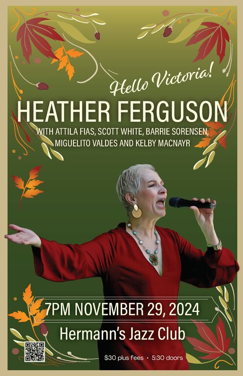 Victoria singer-songwriter, Heather Ferguson, just keeps on growing musically. Known for her interpretations of great 20th century songs, she pivots to her recently recorded original work — with some beautiful standards in the set list just for fun!